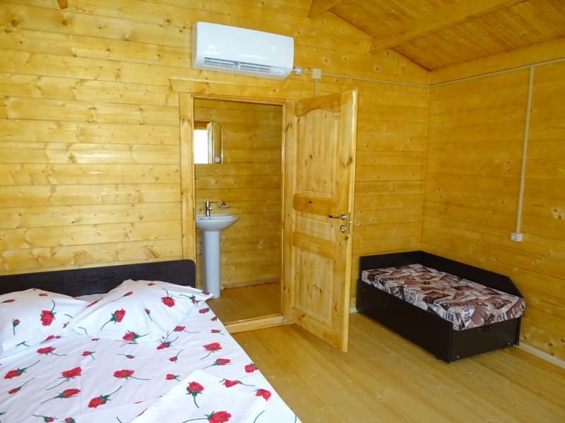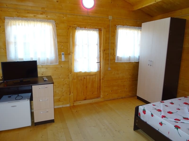 Размещение: однокомнатные номера типа «Коттедж», спальных мест в каждом номере – 2-4. В комнатах установлены: односпальные или двуспальная кровати, шкаф, стулья, прикроватные тумбочки, стол, комод, вешалка, зеркало. Комнаты оборудованы сплит-системой, имеется телевизор, кабельное ТВ, Wi-Fi интернет, балкон с выходом во двор. Санузел и душ находятся в коттедже.