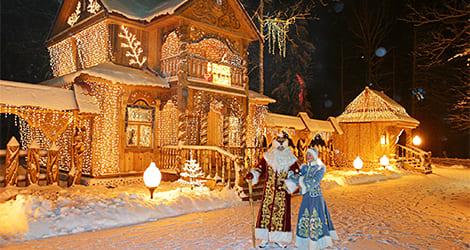 Экскурсия в НОВОГОДНЮЮ БЕЛОВЕЖСКУЮ ПУЩУ, занесенную в Список мирового культурного и природного наследия ЮНЕСКО. Ныне это — Национальный парк, в котором сочетаются богатый растительный мир и изумительные ландшафты. Здесь растет самая высокая ель Европы, здесь обитают мощные зубры, здесь удивительное разнообразие мира животных. Множество великих имен связано с этими краями — от братьев Тышкевичей и Тызенгаузов до Наполеона и Николая II… В Пуще вы посетите МУЗЕЙ ПРИРОДЫ, богатая коллекция экспонатов которого представляет полную палитру флоры и фауны Беларуси. Посещение ПОМЕСТЬЯ ДЕДА МОРОЗА — сказочной усадьбы с многочисленными постройками и сюрпризами… Поместье расположено в глубине Беловежской пущи, где обустроены кормушки для зубров. Здесь построены избушки Деда Мороза и Снегурочки, хранилище подарков Деда Мороза «Скарбница», мельница. Посещение ВОЛЬЕРОВ С ЖИВОТНЫМИ.