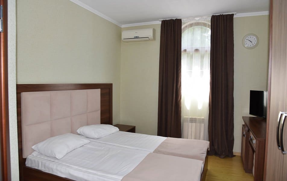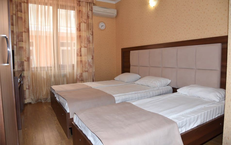Номера: 2-х, 3-х, 4-х, 5-ти местные, двухкомнатные и трехкомнатные апартаменты с индивидуальными мини-кухнями.