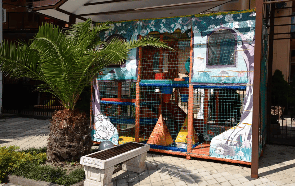 На территории комплекс развлечений для детей и взрослых: мини бильярд, аэрохоккей, детский лабиринт, батут для детей.